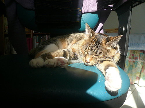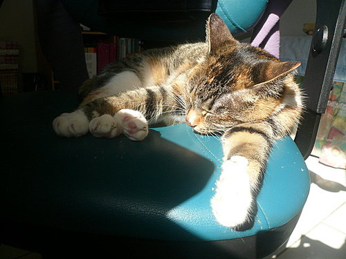 一有機會就霸占媽媽的椅子,這天還難得的有太陽