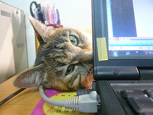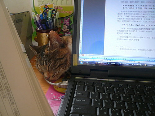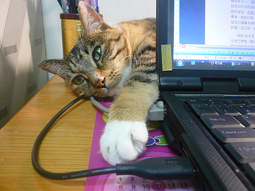突然間又很專注的看媽咪打報告,阿是要準備攻擊我嗎= ="