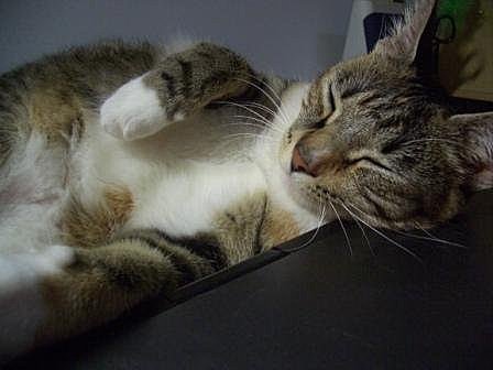 今天早上拼命的打書摘而我的小幸福喵則負責拼命的睡 XD太可愛啦,毛長的真漂亮,陽光下十分柔順睡相近照連睡覺都超可愛冬天可能比較冷吧電腦後面會有點熱熱的,因為電腦的散熱在後面雖然會擔心幸福喵長時間在後面會吸收很多輻射不過,因為她哪裡都會睡,所以時間不長的話,我是還能接受的這是2005年幸福睡在電腦後面的照片我只能說,幸福這樣的舊習慣,對我來說是一件很欣慰的事情。