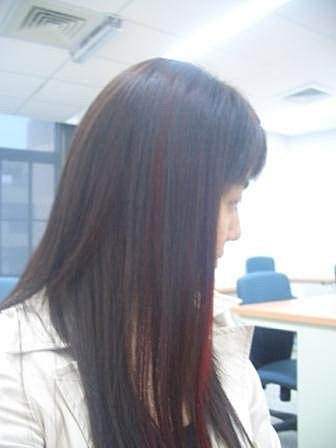 因為頭髮很長,為了避免厚重,染了棕紅色,依瑩說以後可以自己染,她會教我@@"