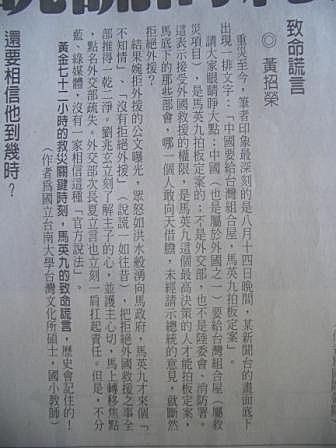 第一篇說馬英九救災沒有辦陳雲林和張銘清事件來的快,甚至慢了十萬八千里